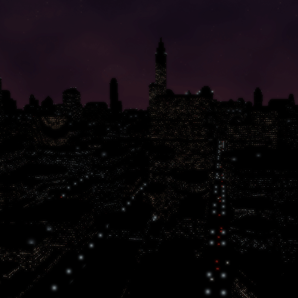 Considering the scale and limited time for this project, any advanced kind of road network generation is out of scope. Therefore a block-based network is the most appropriate. We can create city blocks on a grid and then place simple billboard sprites to represent streetlights, which looks convincing enough from a distance.